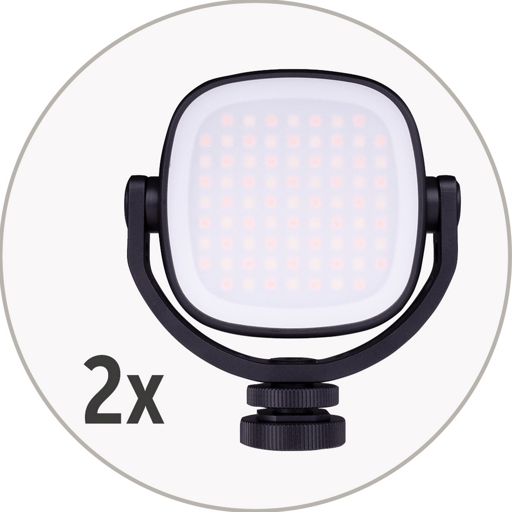 que ilumina óptimamente objetos de tamaño pequeño y mediano sin sombras. La intensidad de la luz de las luces de vídeo LED se puede ajustar.
