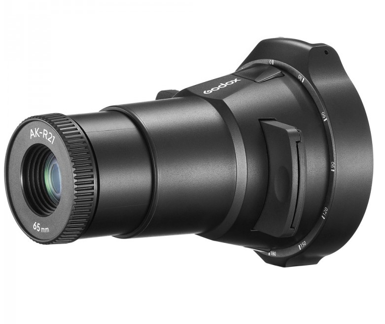 Godox AK-R23 es una lente de 83 mm diseñada para el accesorio de proyección AK-R21, que cambia el ángulo del haz de luz emitido por el conjunto de iluminación. El objetivo funciona perfectamente con el accesorio AK-R21 y, en combinación con un flash, le permite lograr efectos creativos. Godox ofrece tres lentes diferentes. El modelo de 50 mm generará el haz de luz más ancho, el de 65 mm es un modelo intermedio y la lente de 83 mm te permitirá enfocar el haz de luz más estrecho y lograr efectos milimétricos.