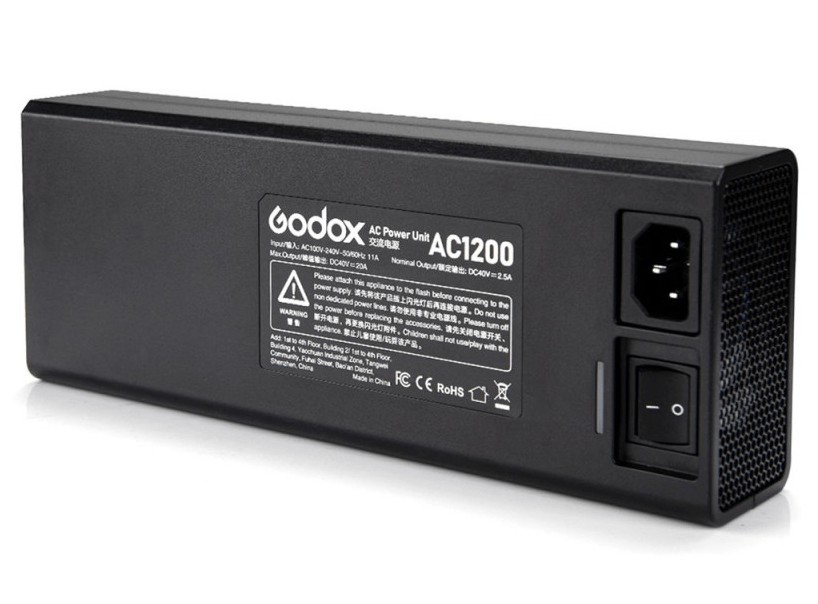 El adaptador de CA AC1200 para kit de batería Godox AD1200PRO conecta el