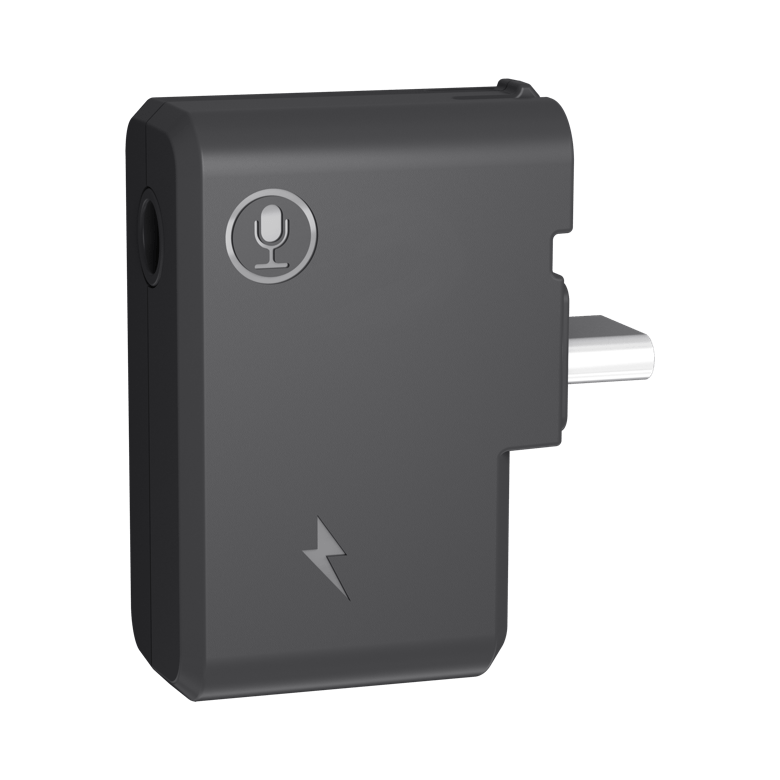 Adaptador dual para micrófono con jack 3,5mm y alimentación USB-C para la cámara