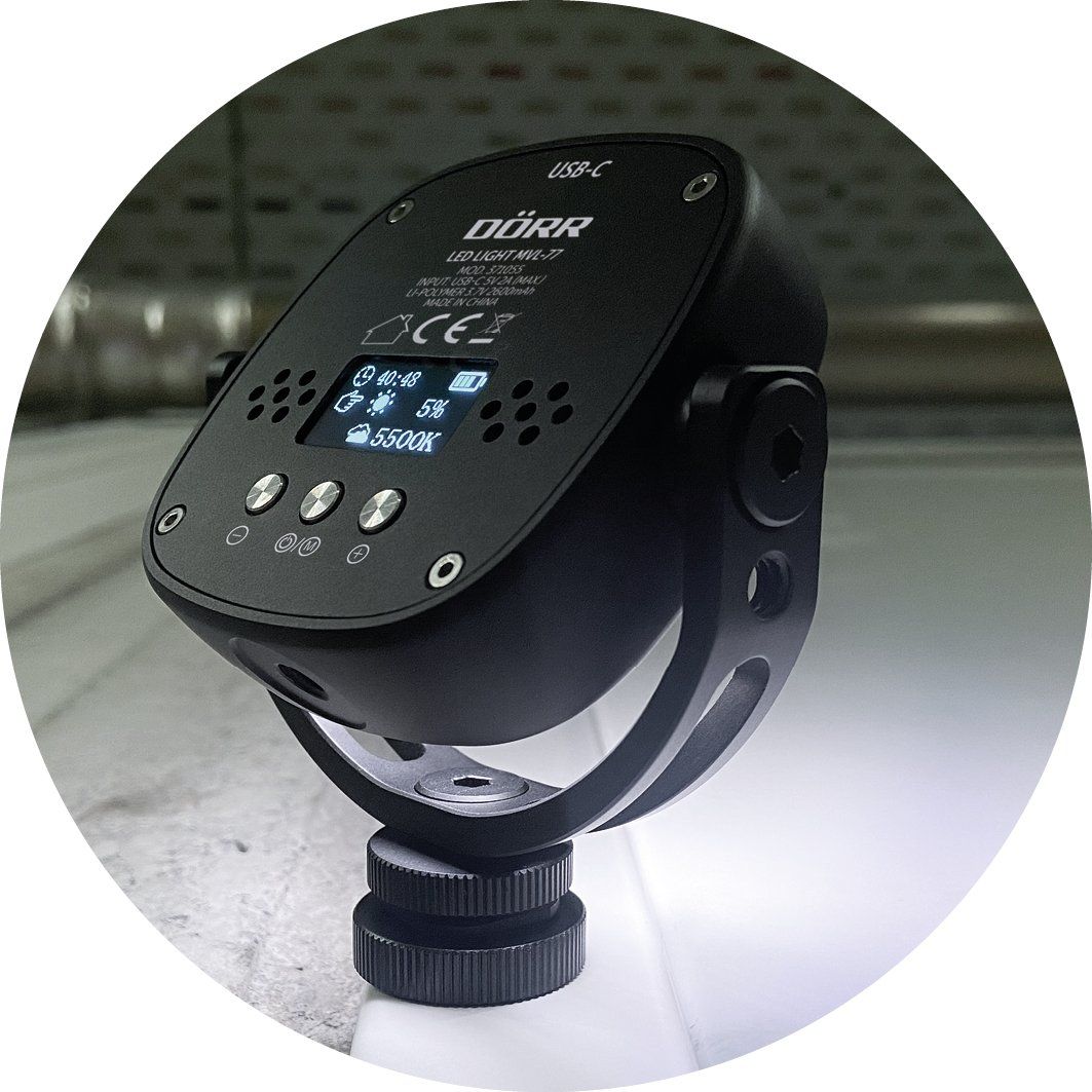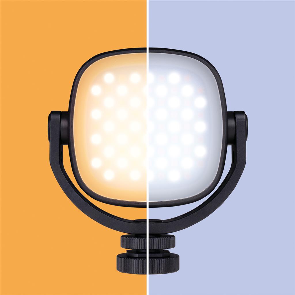 77 LED bicolores de larga duración (40x blanco cálido + 37x blanco frío), esta luz de video proporciona una iluminación potente. El brillo se puede regular de 0 a 100% para adaptar la iluminación de manera óptima a las necesidades de fotografía y vídeo.