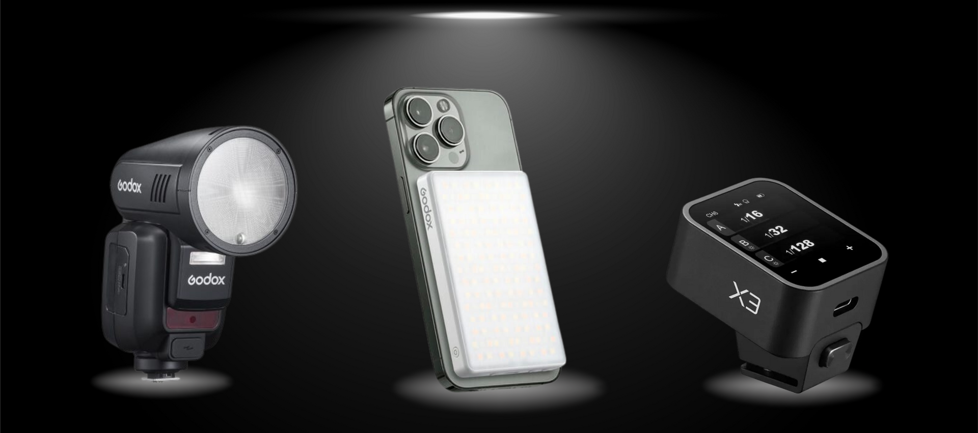 Seguramente ya cuentas en tu equipo con el Godox V100, pero si todavía no lo tienes, es un complemento que merece la pena añadir. Su diseño ligero y ergonómico, la batería de larga duración y la rapidez de reciclado lo convierten en una herramienta ideal para mantener tu ritmo creativo sin interrupciones. Junto a él, el Godox X3 te da un control total sobre la iluminación de forma intuitiva y compacta, perfecto para sesiones donde necesitas precisión y comodidad al mismo tiempo.