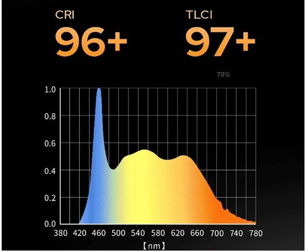 Ofrece un alto rendimiento de color CRI 96 y TLCI 97 y temperatura de color de 5600ºK ± 200ºK.