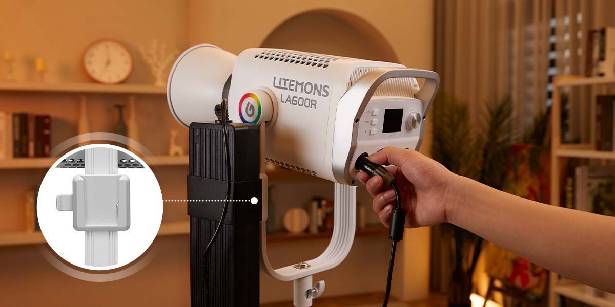 El LA600R/Bi funciona con un potente sistema de alimentación XLR de 48V, garantizando un rendimiento constante tanto en rodajes interiores como exteriores. Su suministro eléctrico estable permite un funcionamiento ininterrumpido y de alta potencia, mientras que el soporte incluido y el adaptador con cierre mejorado facilitan una configuración rápida y eficiente.