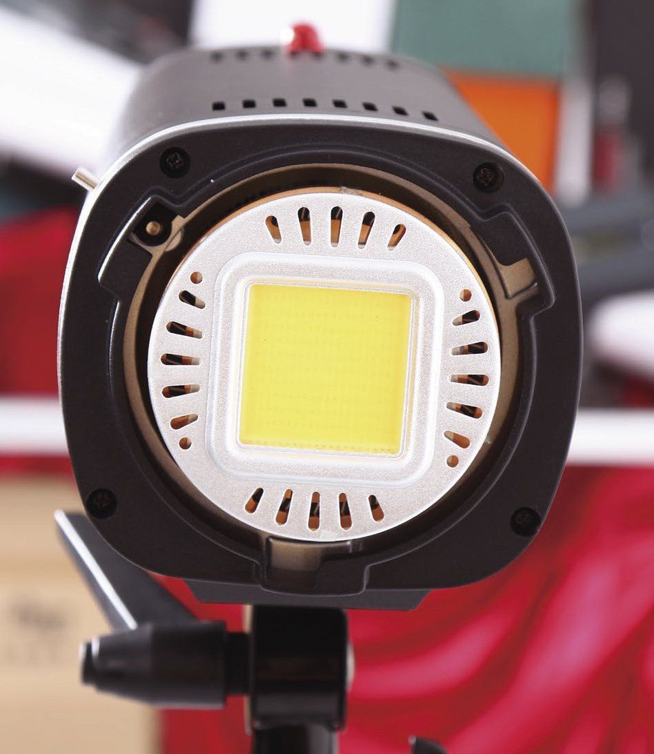 Foco Pro LED para fotografía y vídeo. COB LED de alta potencia con pantalla digital, tecnología de disipación de calor, brillo regulable y montura bowens.