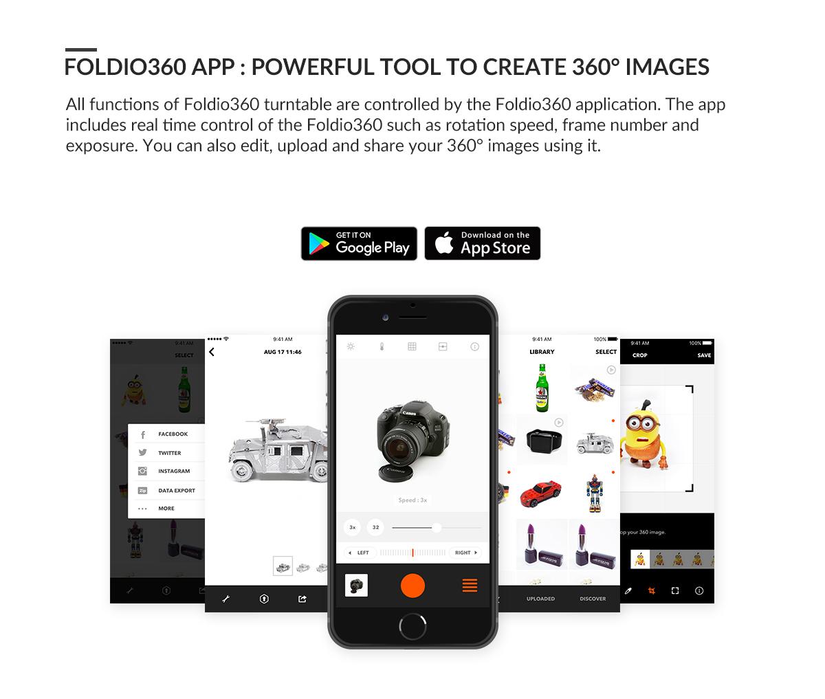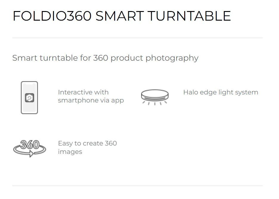 ORANGEMONKIE Foldio360, puedes fotografíar objetos más grandes al cuadruplicar el área de la plataforma. El kit está diseñado para que la realización de imágenes 360 resulte tan fácil, como trabajar con la