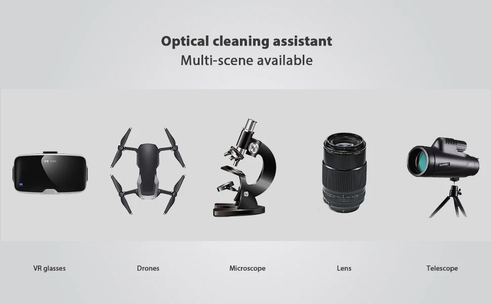 Con 33 piezas esenciales, el kit cubre las necesidades de limpieza durante trayectos largos o múltiples sesiones de trabajo, manteniendo tus equipos ópticos en condiciones óptimas de funcionamiento.