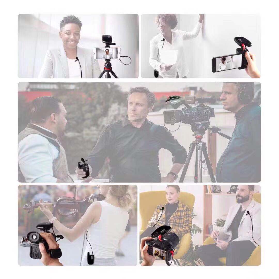 Sistema inalámbrico de doble canal, con micrófono de solapa y comunicación UHF de 30 canales (para evitar interferencias, cuando empleamos múltiples dispositivos inalámbricos juntos).