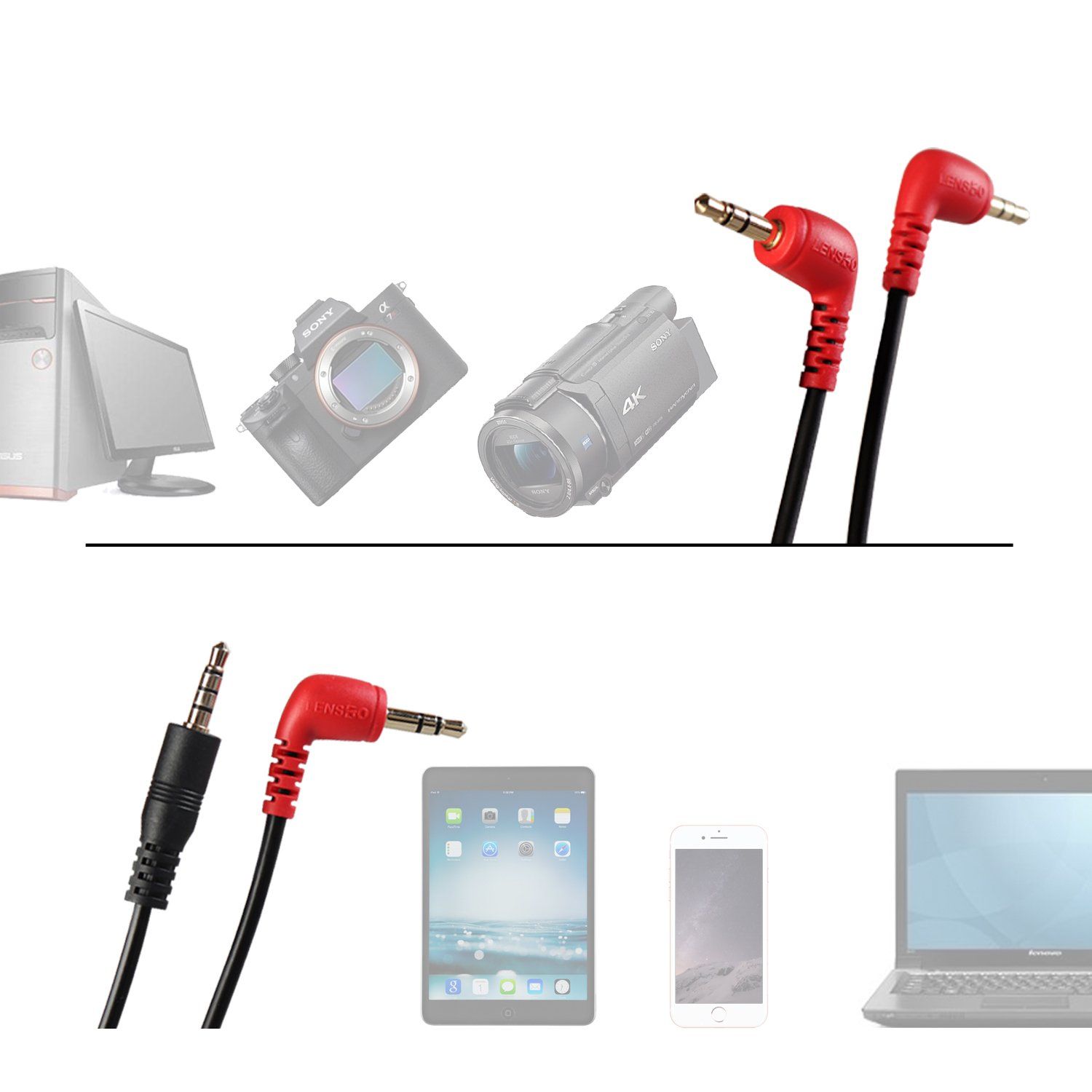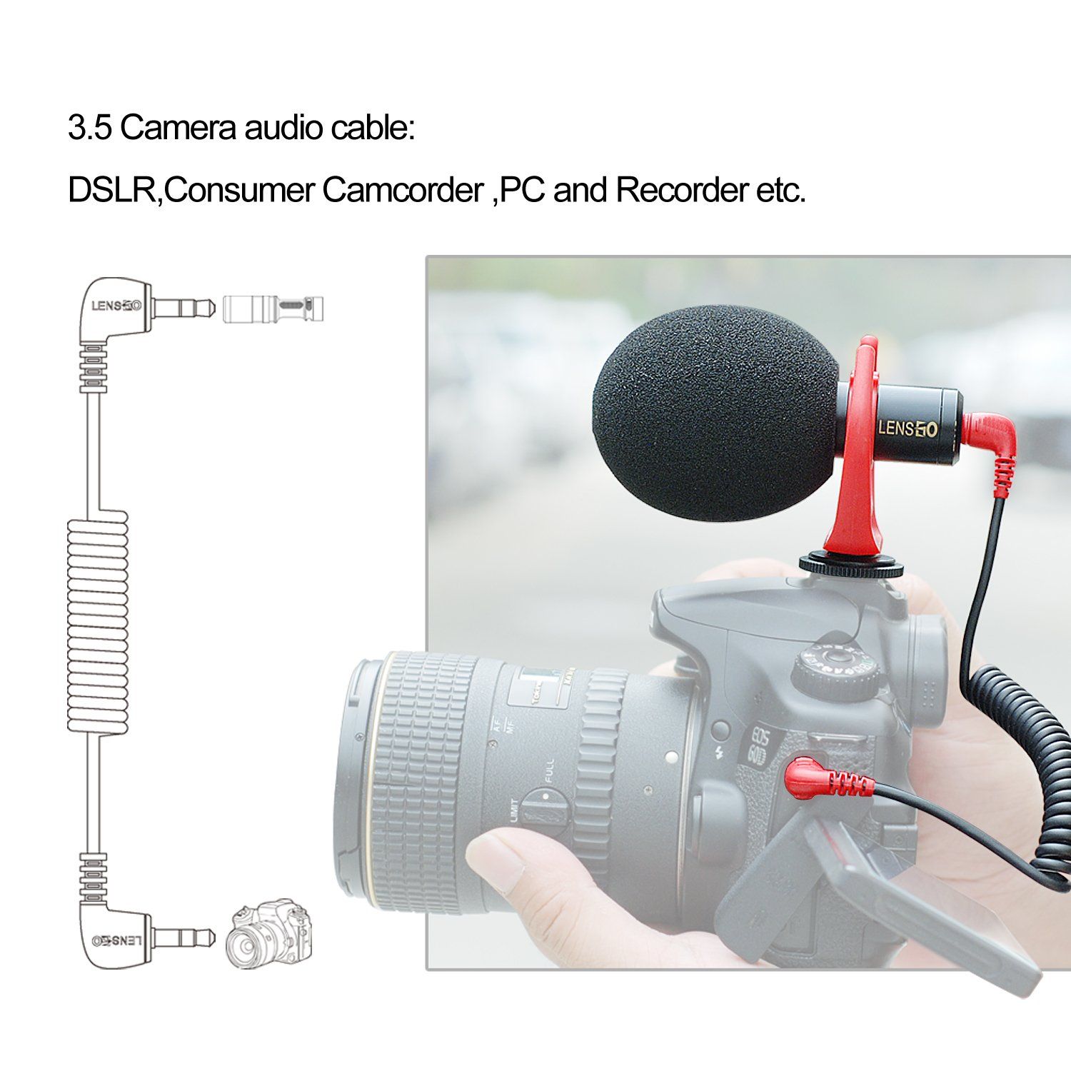 Incorpora dos cables de audio (TRS y TRRS), diseñados para videocámaras, cámaras DSLR, mirrorless, smartphone, ordenadores y grabadoras portátiles.