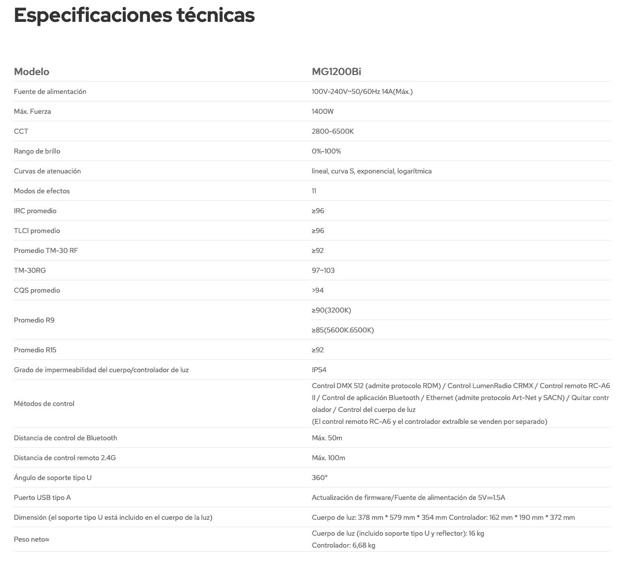 Ya sea para un control intuitivo o una coordinación sistemática para disparos a gran escala, la MG1200Bi se asegurará de controlar las luces de manera mucho más eficiente, flexible e incluso entre marcas.
