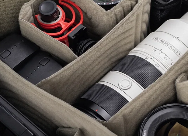 El Camera Insert M es un organizador independiente que ofrece protección superior para equipos fotográficos, además de ser completamente adaptable para su uso dentro o fuera de la mochila.