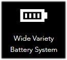 EL “Wide Variety Battery System” soporta todos los tipos de pilas AA, incluyendo las de Li-ion (tipo 14500), NiMH recargables y alcalinas. Con las baterías 14500 obtenemos el reciclado más rápido (1.2 seg. para plena potencia).