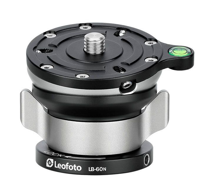 Base Leofoto LB-60N para nivelación con semiesfera. Mando de bloqueo y liberación central.Este nivelador esta hecho en aluminio aeronáutico ligero.Puede combinarse con rótulas panorámicas o tipo balancin Leofoto PG-1 o bien otras similares