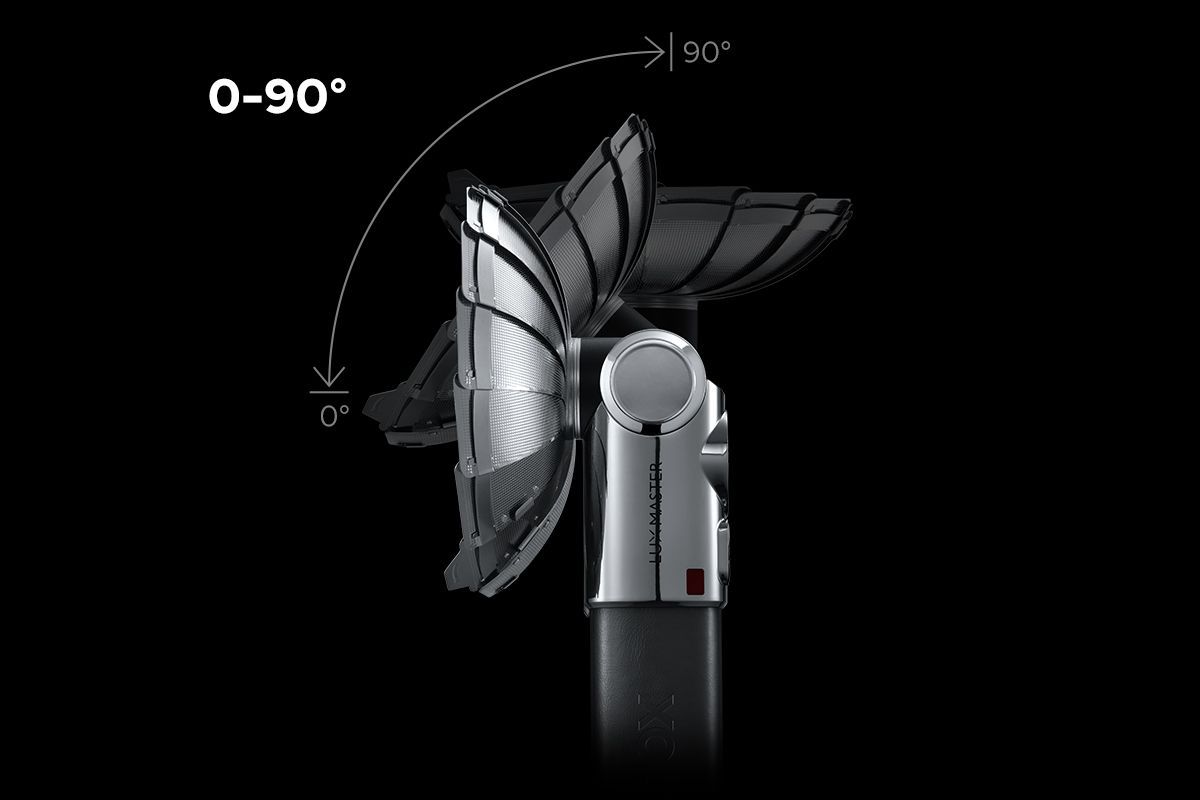 Para los fotógrafos que buscan lograr efectos de flash de rebote, Lux Master cuenta con un cabezal de flash inclinable ajustable de 0 a 90 grados. La identificación de la escala permite ajustes de ángulo precisos, asegurando efectos de iluminación naturales y profesionales.