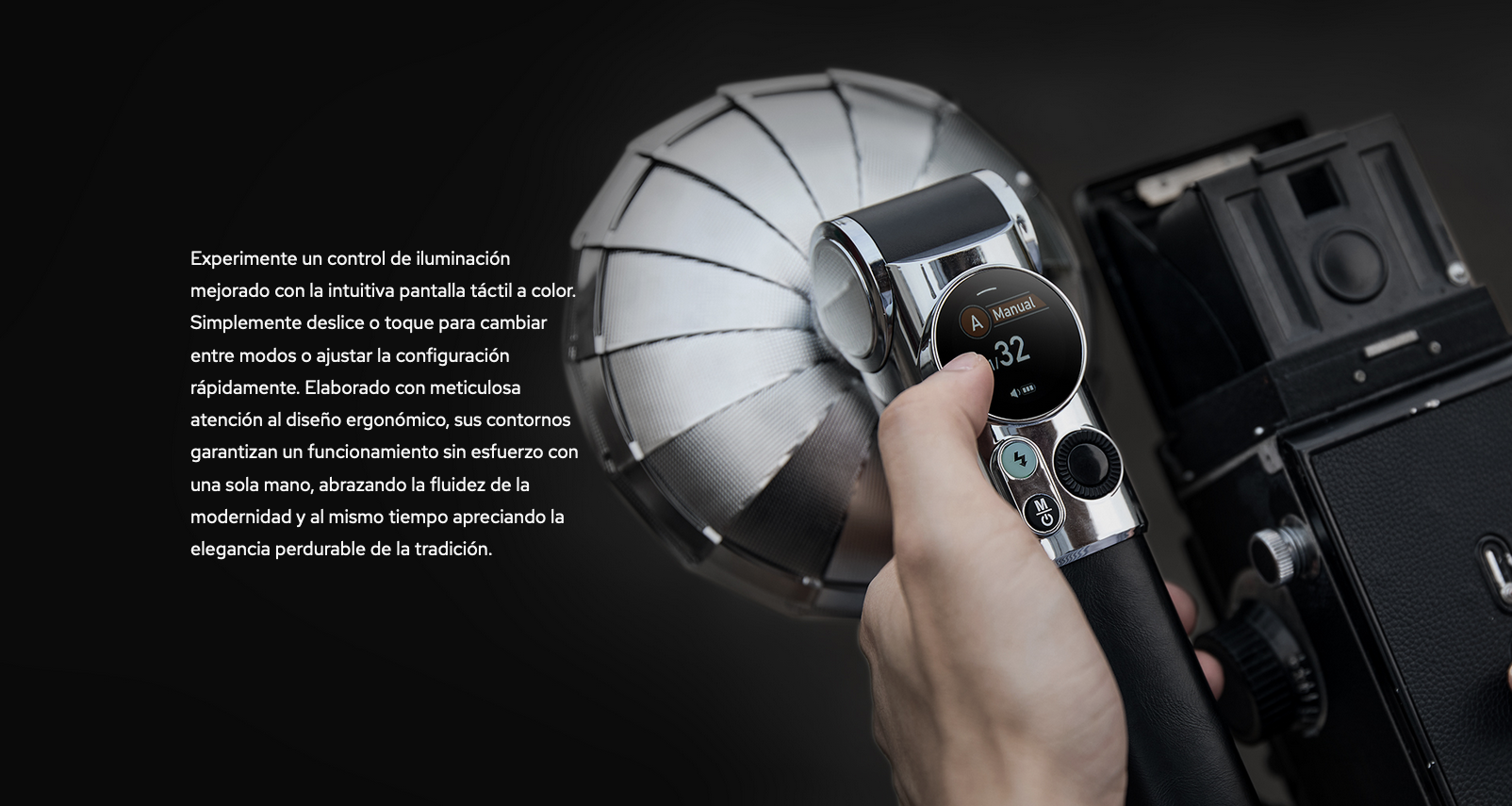 La elegancia atemporal se une a la tecnología de vanguardia con Lux Master, la última incorporación a nuestro flash de cámara retro de la serie Lux. Con un clásico reflector plegable tipo abanico y una eficiente pantalla táctil a color, Lux Master combina sin esfuerzo el brillo nostálgico de antaño con la comodidad moderna de hoy.
