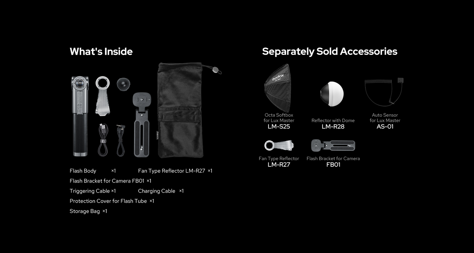 Disfrute de la flexibilidad de activar Lux Master de varias maneras. Con su receptor inalámbrico 2.4G incorporado, puede activarse mediante disparadores de flash del sistema Godox Wireless X. También puedes utilizar una unidad de flash principal como el V1Pro para disparar. Además, para las cámaras de película con una zapata heredada, Lux Master ofrece un sensor automático opcional que conecta su cámara y el flash sin problemas, lo que facilita una exposición precisa y consistente.