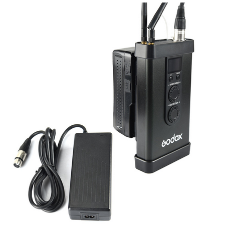 Puede alimentar sus luces LED con una batería de litio (la batería del puerto V se vende por separado) o con una fuente de alimentación de CC.