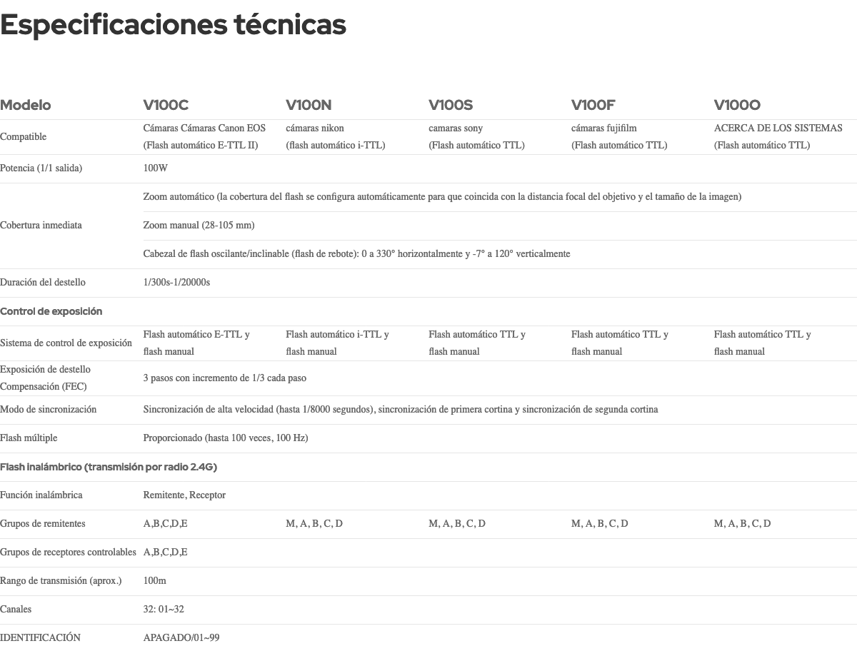 El V100 establece un nuevo punto de referencia para los flashes de cámara al ofrecer una potencia sin precedentes de 100 W en su salida máxima (modo M). Con pasos de potencia ajustables de 1/1 a 1/256 o de 2,0 a 10, cubre el espectro desde una luz de relleno sutil hasta una iluminación potente para diversos escenarios, superando los límites de la creatividad en la fotografía con flash.