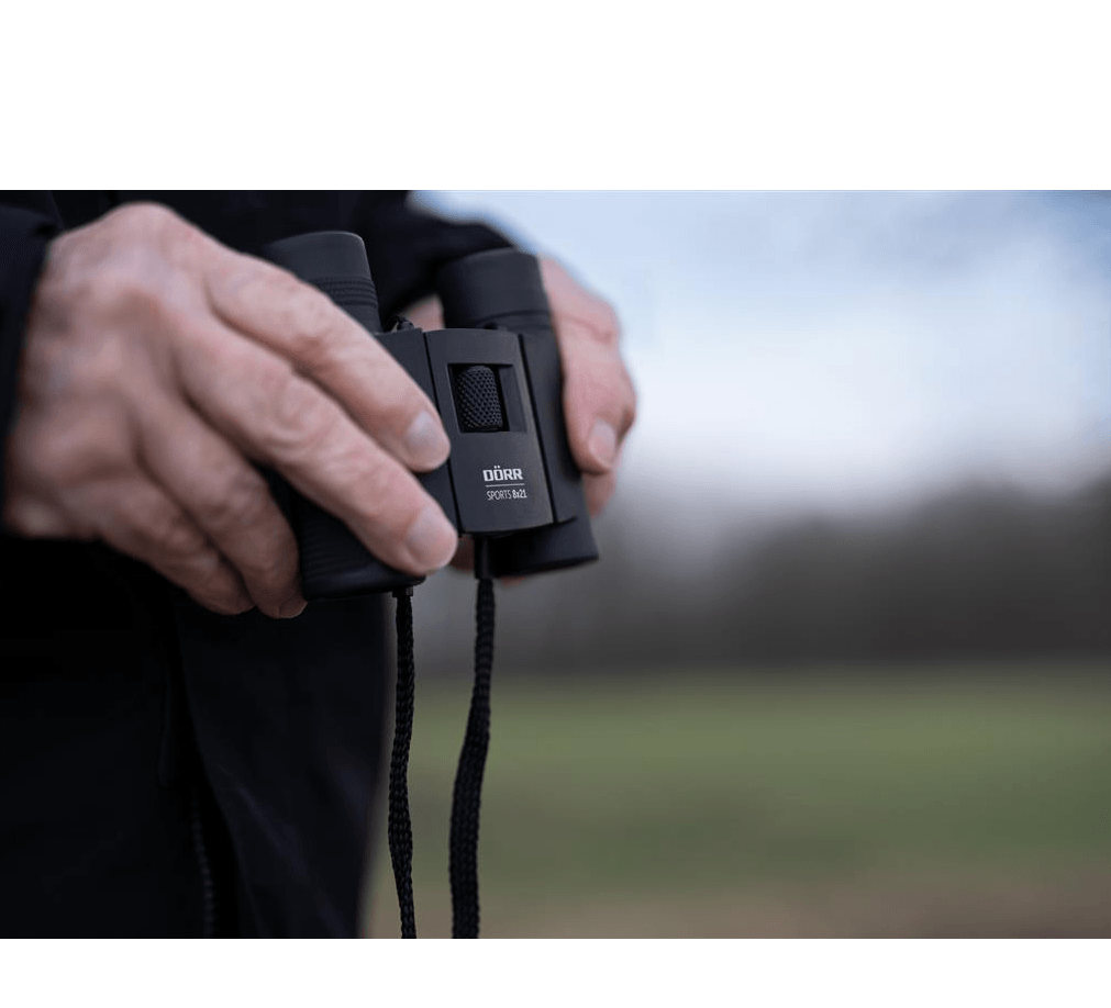 prismáticos DÖRR Sport pueden colgarse cómodamente del cuello o del hombro.
