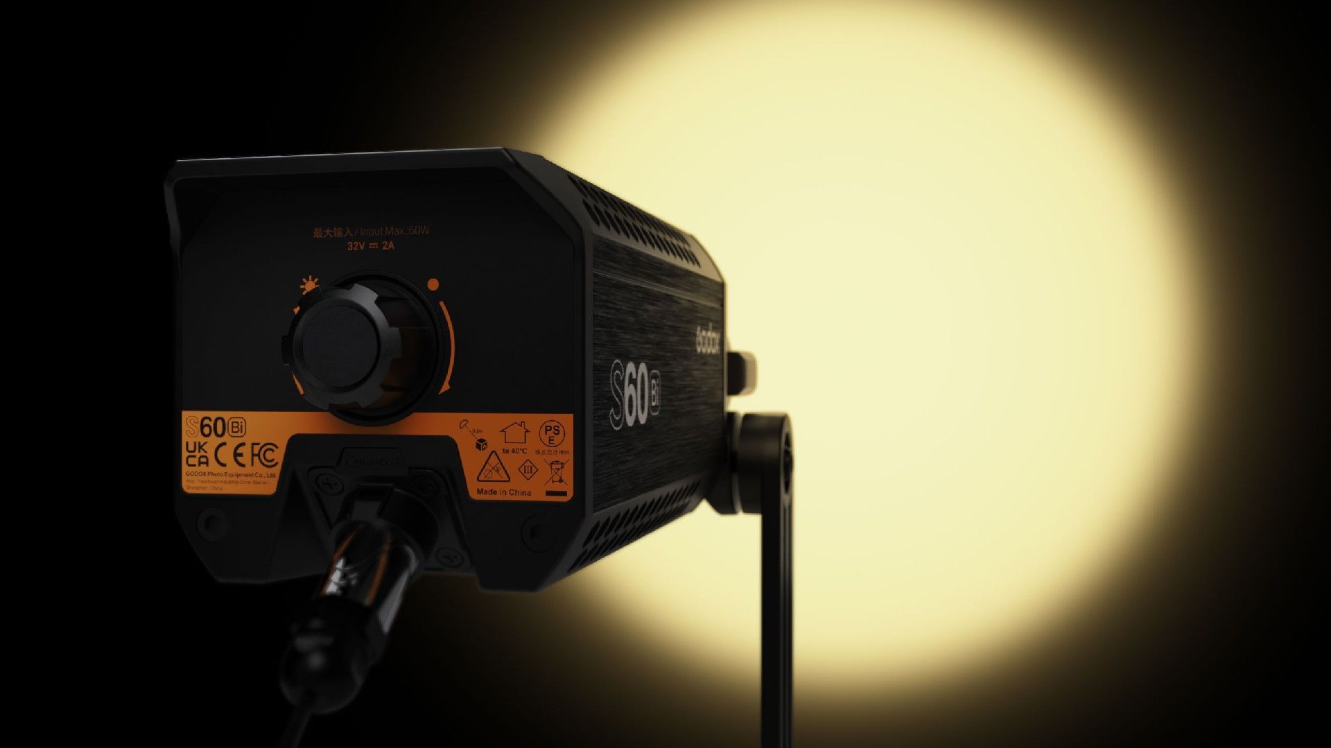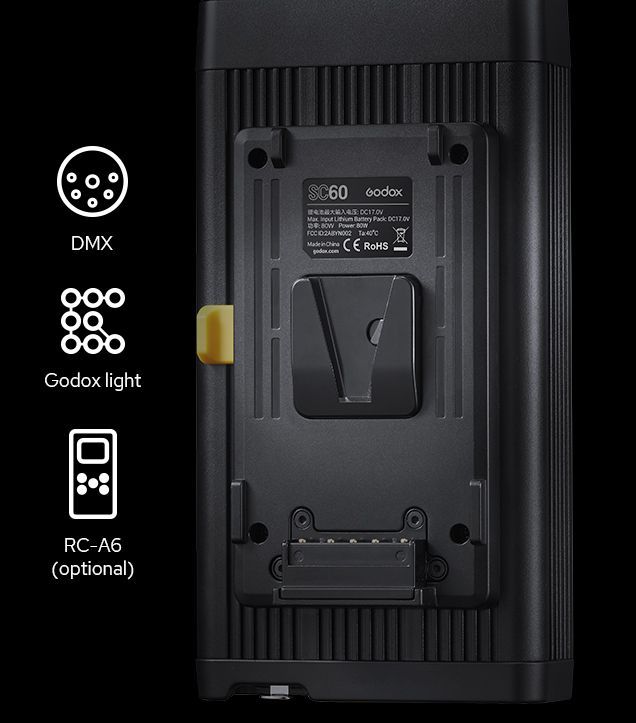 S60 y S60Bi vienen con una caja de control separada que admite fuente de alimentación de CA y batería de montaje en V (opcional); el diseño que separa la caja de control del cuerpo de la luz asegura mejores efectos de enfriamiento.