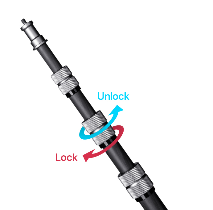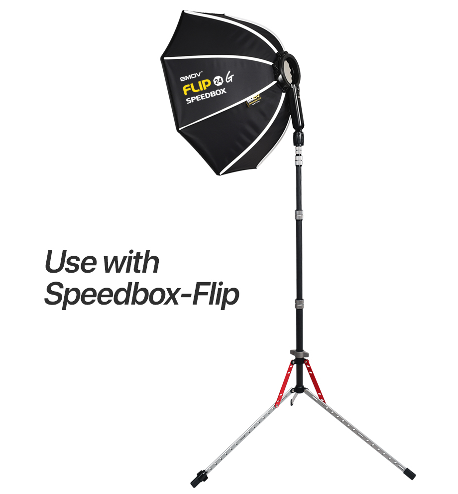 El pie de carbono portatil para flash SM-08 es el perfecto acompañante a los SPEEDBOX - FLIP. Es liviano y a su vez robusto.