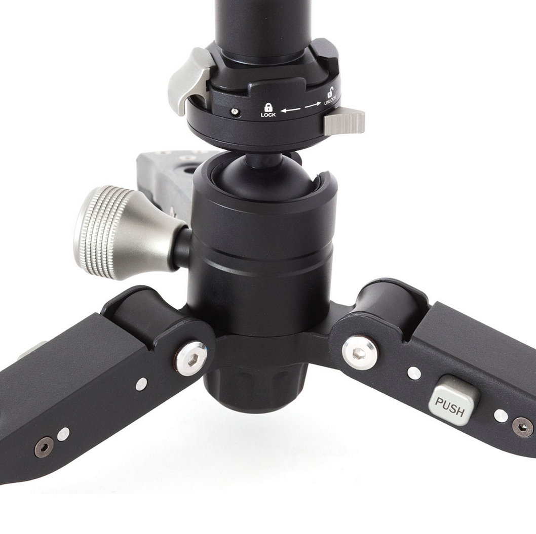 Permite acoplar de forma rápida y segura mediante zapata extraíble con salida de tornillo 3/8 a cualquier monopie.