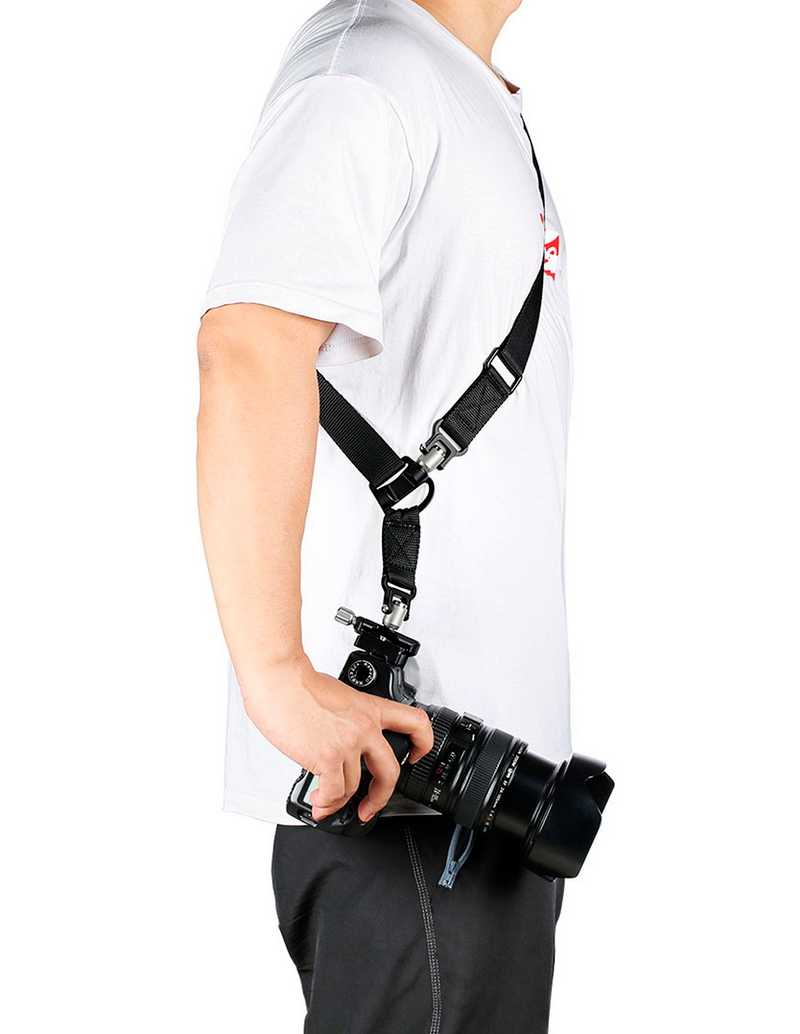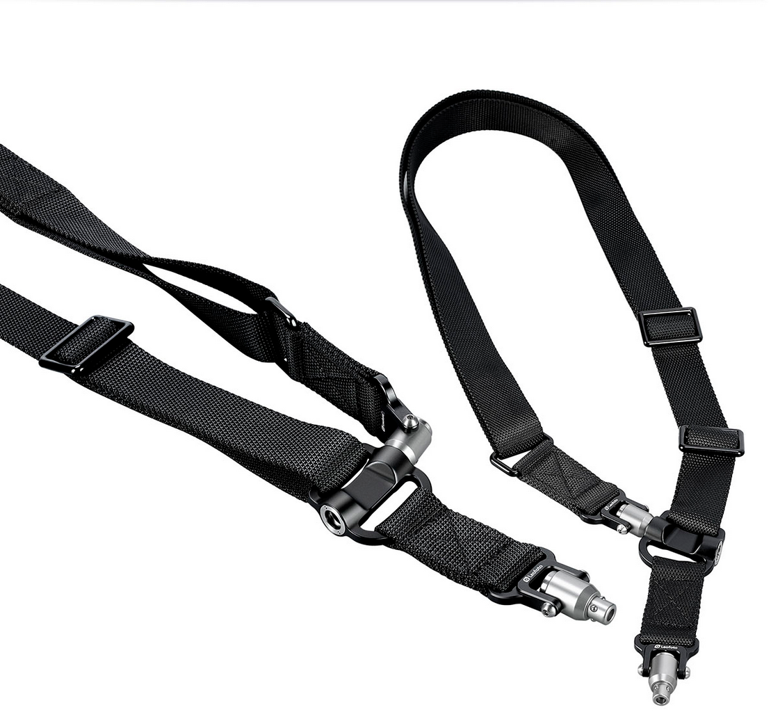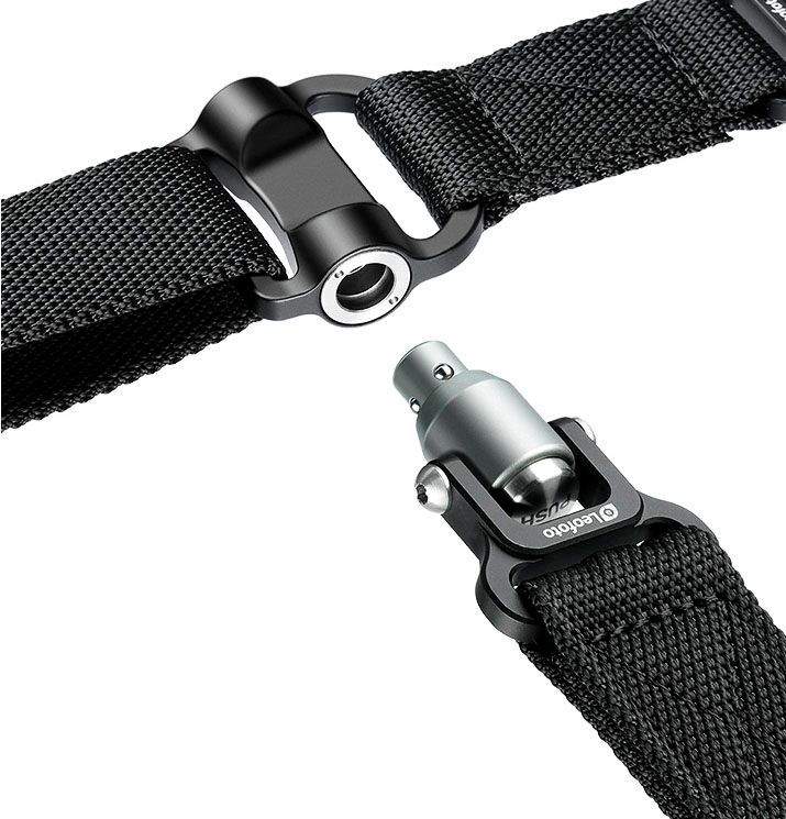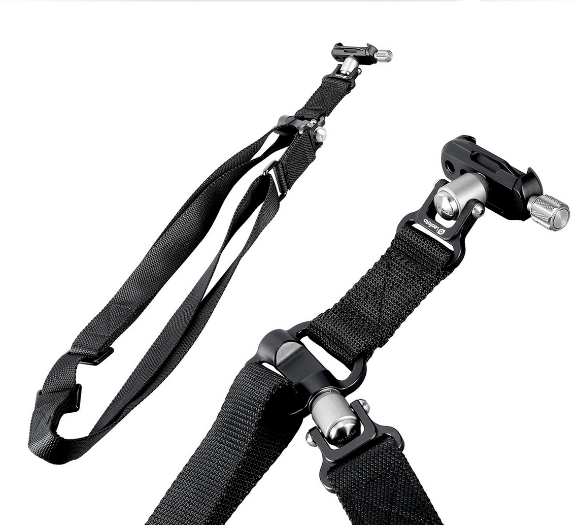 De tipo bandolera la correa Leofoto SP-01+DC-22Q hecha en nylon y anclajes en aluminio aeronáutico de acceso rápido para cámaras y/0 trípodes Leofoto.