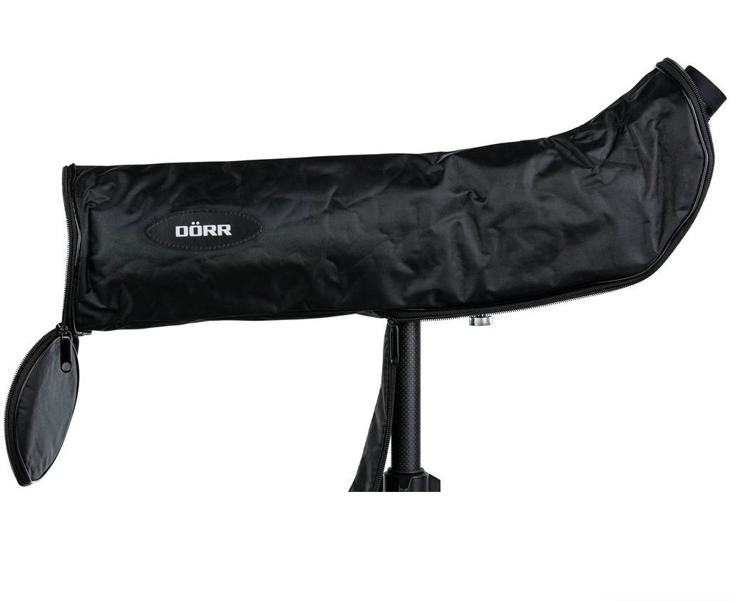 conexión de ¼" para su montaje. La bolsa Stay-On suministrada puede permanecer en el catalejo mientras se observa y, por lo tanto, protege contra las condiciones meteorológicas como la lluvia, la nieve y la niebla.