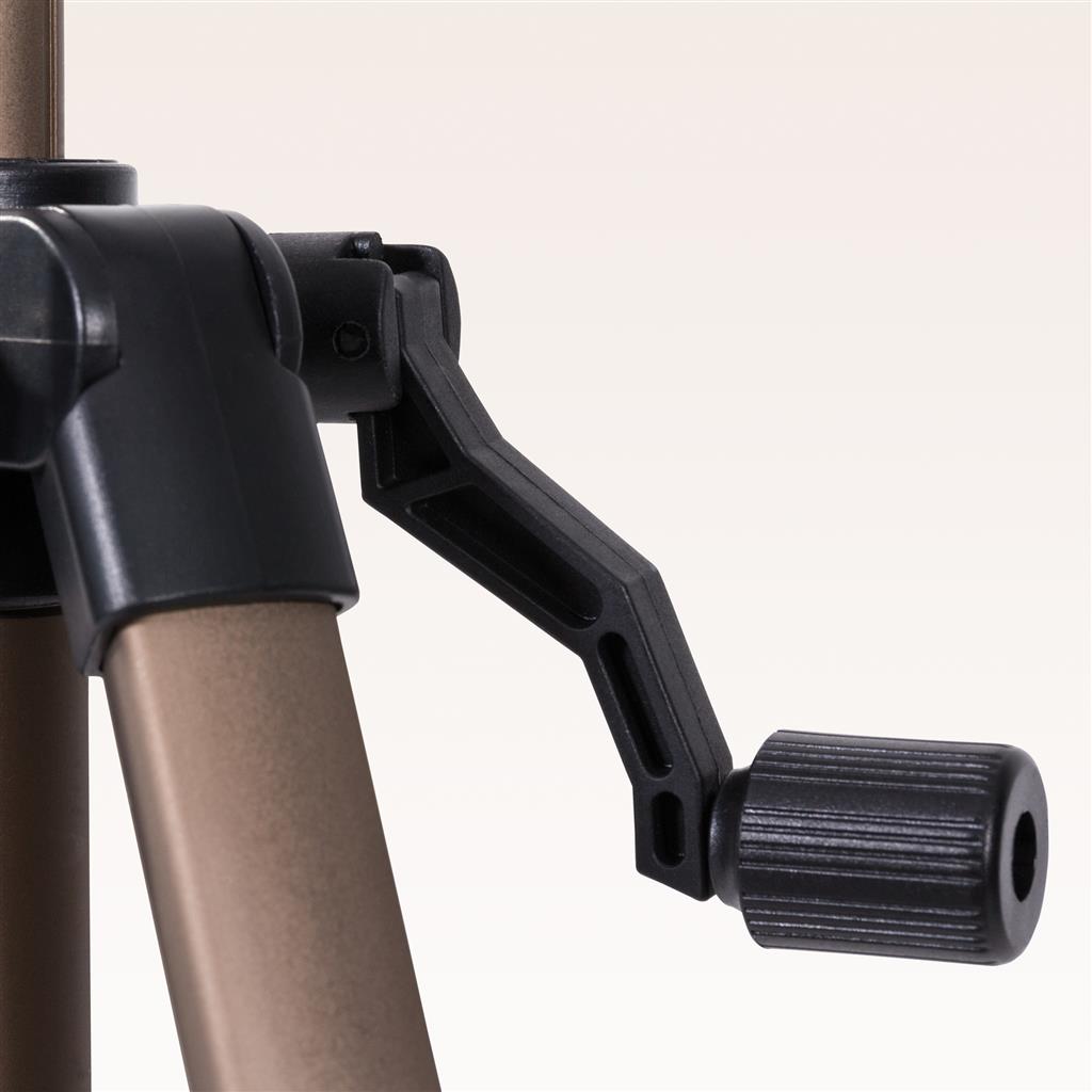 - Columna central con barras transversales y manivela para ajuste de altura.