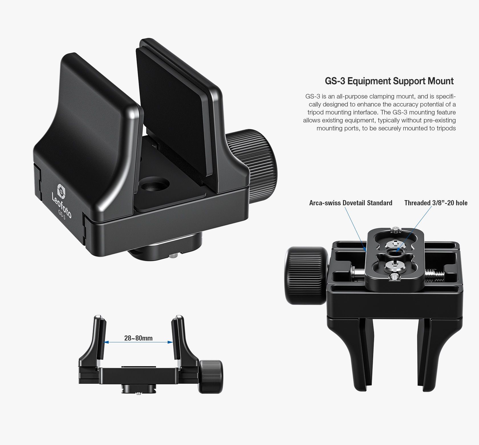 - Versatilidad: La columna central GS3 es reversible y ofrece un ajuste flexible para obtener ángulos bajos o altos.