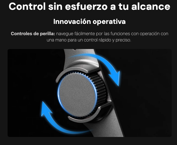 Disfrute de un manejo suave y táctil con una interfaz de usuario intuitiva. Acceda rápidamente a las funciones principales mediante la perilla y los botones personalizados.