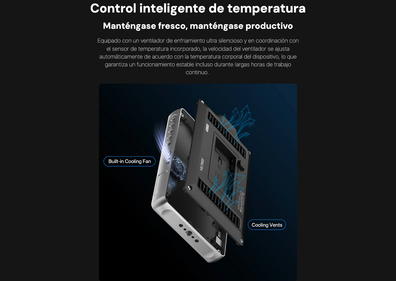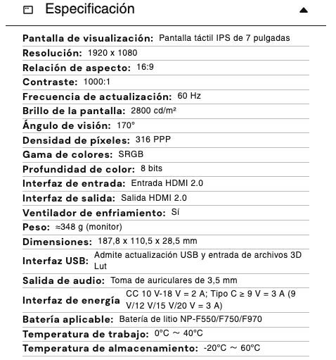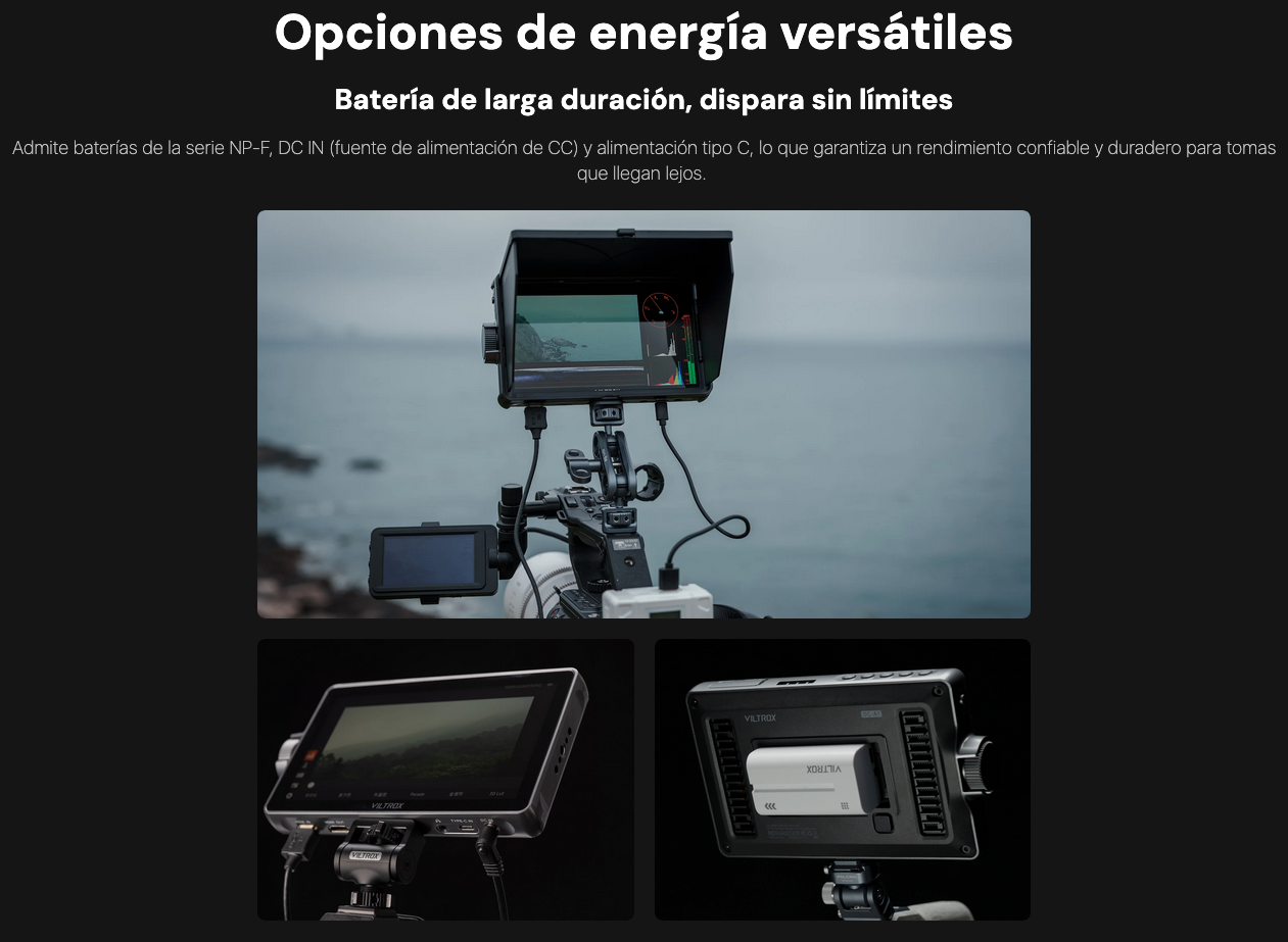 Se alimenta mediante batería NP-F, Tipo C o entrada de CC. Te permite seguir adelante durante largas sesiones de grabación.