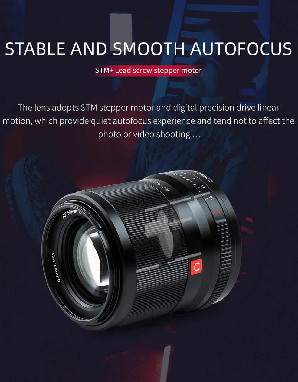 STM y un movimiento lineal de accionamiento de precisión digital, que proporcionan una experiencia de autoenfoque silenciosa y tienden a no afectar a la toma de fotografías o vídeos.