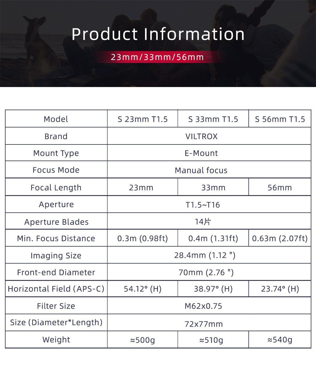 Los Viltrox 23, 33 y 56mm T1.5 están conformados por 11 elementos divididos en 10 grupos, que incluyen 2 lentes de dispersión extra baja y 2 de alta refracción. Este diseño aumenta el rendimiento óptico y, puesto que son objetivos concebidos especialmente para vídeo, minimiza el "Focus Breathing" (la ligera variación de la distancia focal al variar la distancia de enfoque).