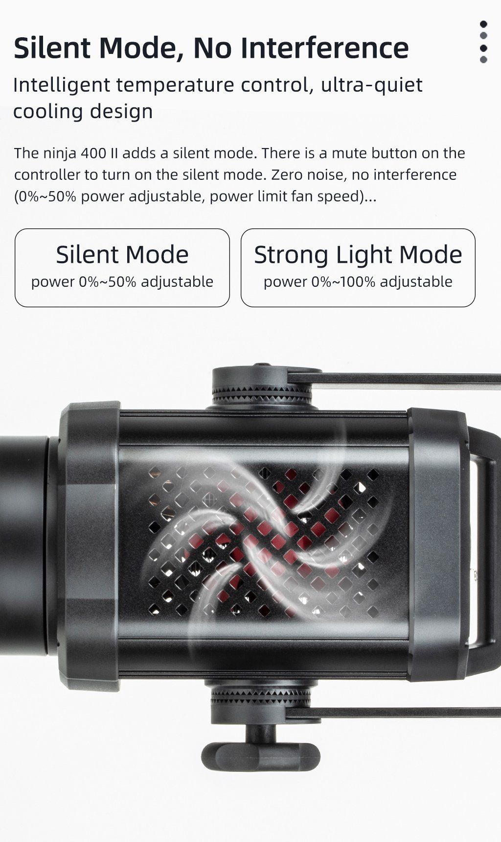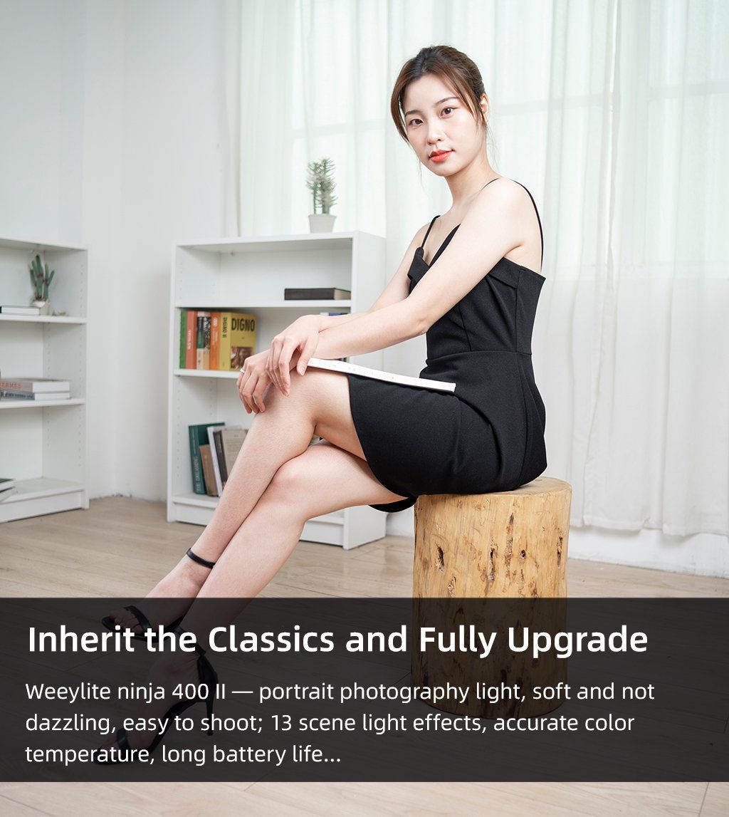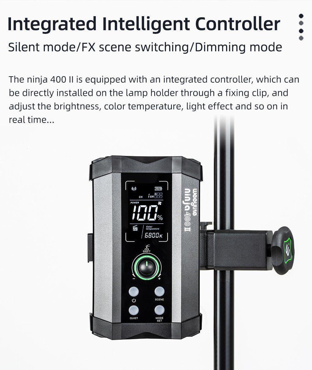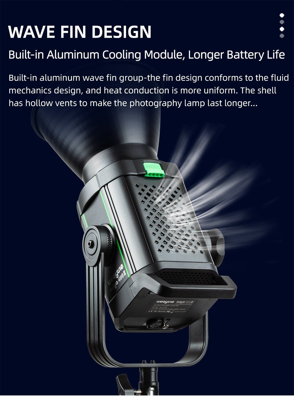 El Weeylite Ninja 400 es una luz de alta potencia. Cuenta con la nueva tecnología COB LED que ofrece una potente luz de gran eficiencia y alto índice de reproducción cromática (CRI). Ideal para fotografía y vídeo.