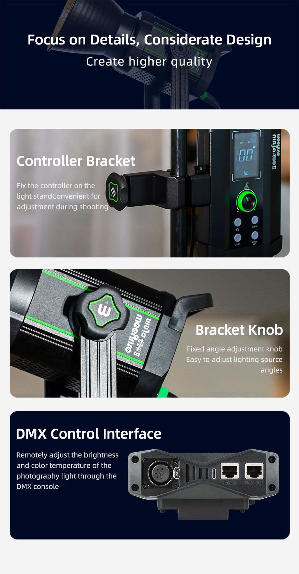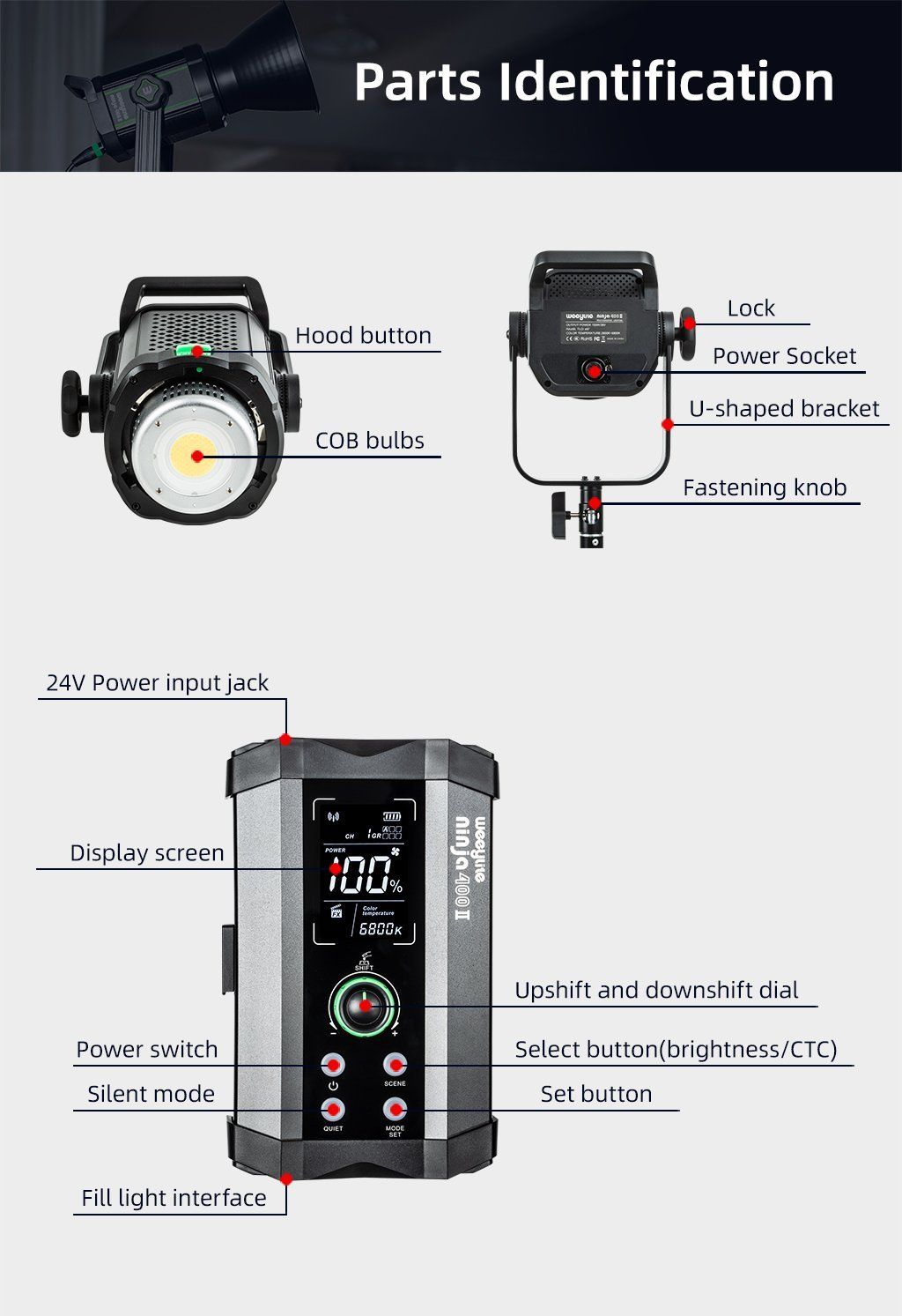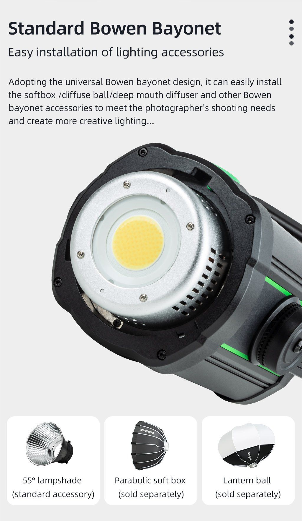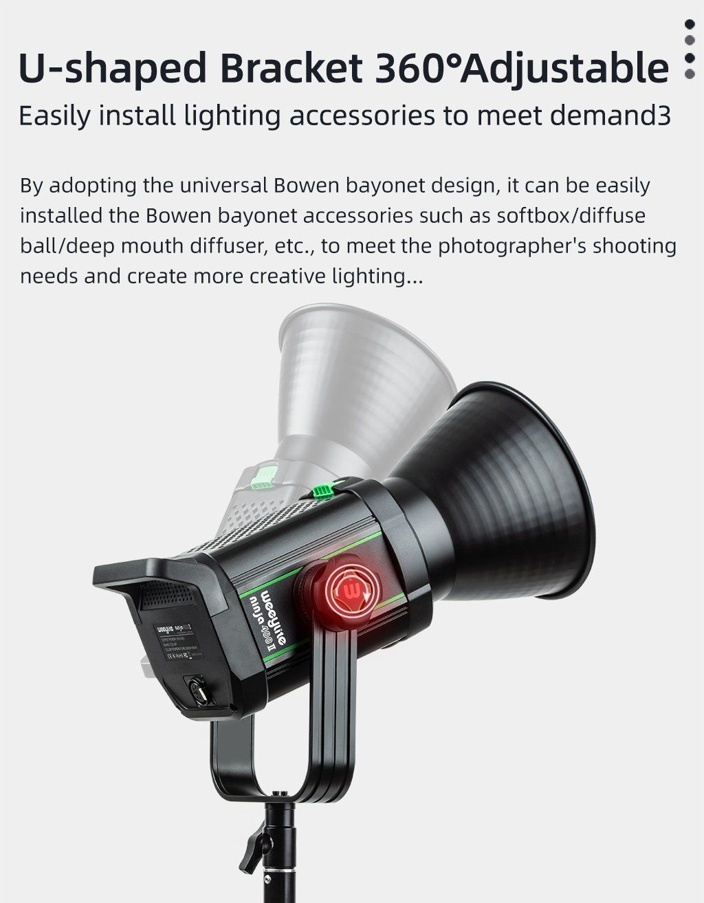 El Weeylite Ninja 400 es una luz de alta potencia. Cuenta con la nueva tecnología COB LED que ofrece una potente luz de gran eficiencia y alto índice de reproducción cromática (CRI). Ideal para fotografía y vídeo.