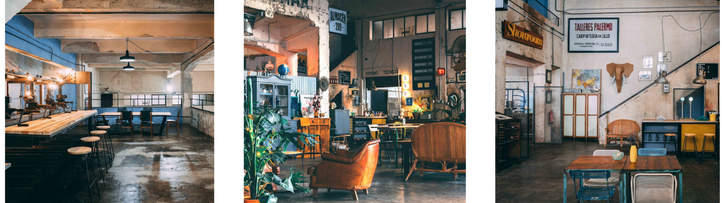 El ambiente que se respira aquí, con el recuerdo de los años pasados de trabajo como taller de carpintería impresos en sus paredes y maquinaria antigua, estimula la creatividad y el esfuerzo.
