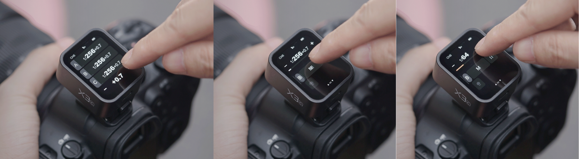 Ya sea que prefieras la simplicidad del modo TTL o el control preciso del modo manual, el X3 te permite cambiar entre ellos rápidamente.
